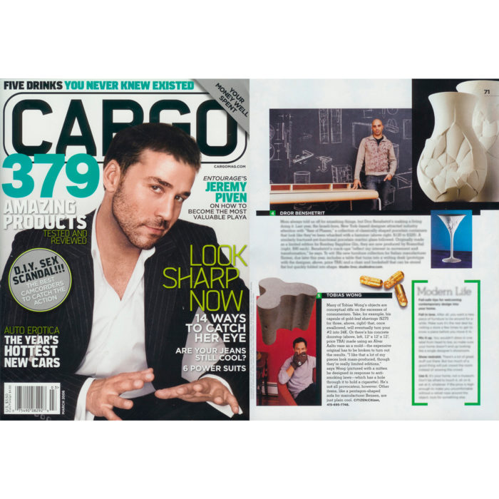 ccPhone Tobias Wong Date of Design 2007 Size 115 mm L, 11.6 mm W, 61 mm H Material iPhone (aluminum, glass, silicon, carbon) Edition 50 Customized inside and out, with the knowledge that in today’s digitally enhanced world the object and the information it holds […]
