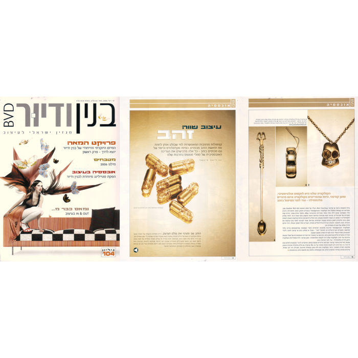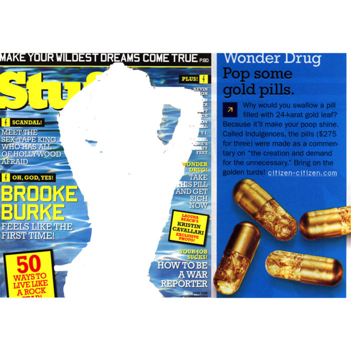 Gold Pills Tobias Wong Wong & J.A.R.K. Date of Design Size 20 mm L each Material 24K gold leaf, capsules Edition Unlimited Analogous to our culture’s obsession with luxury and consumption, these 24K gold leaf capsules turn your innermost parts into chambers of wealth. Consume […]