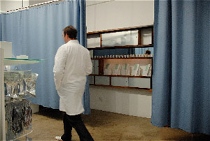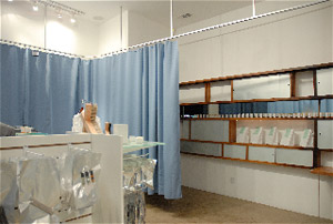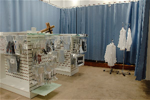 Store interior with hospital curtain