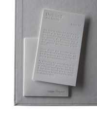 Each book is unique 1/1, devoid of all text and print, it is a pre-production draft from the publishing industry. By generating only a single book, it subverts mass production practice and becomes a craft object. These simple and beautiful series of books, with their title and authorship lost, act like an unopened present, leaving the door to your imagination ajar. By celebrating the vessel—the book as object—Untitled explores new ways of seeing our world and the objects in it, reminding us of the power and beauty of the object and its ability to represent ideas.