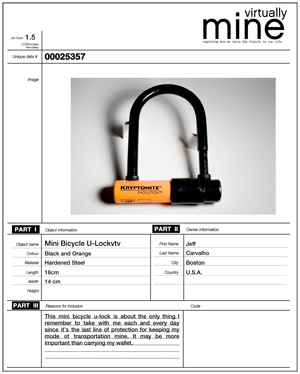 Ultimately within these days of mass global consumerism, Virtually Mine offers a chance to observe ours and others relationships to the objects in our lives. The project was conceived by Philip Wood creative director of CITIZEN:Citizen as part of an on-going exploration of art and design. Visit Virtually Mine and reconsider the meaning of the objects in your life.