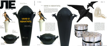 Le magazine shows a two-page spread of work by FredriksonStallard. It features Dragon #1, Table #1, Kite , and their Villosus Vase.