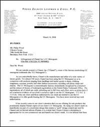 Our second cease and desist came from a french based clothing brand Chanel who through their lawyers in NY