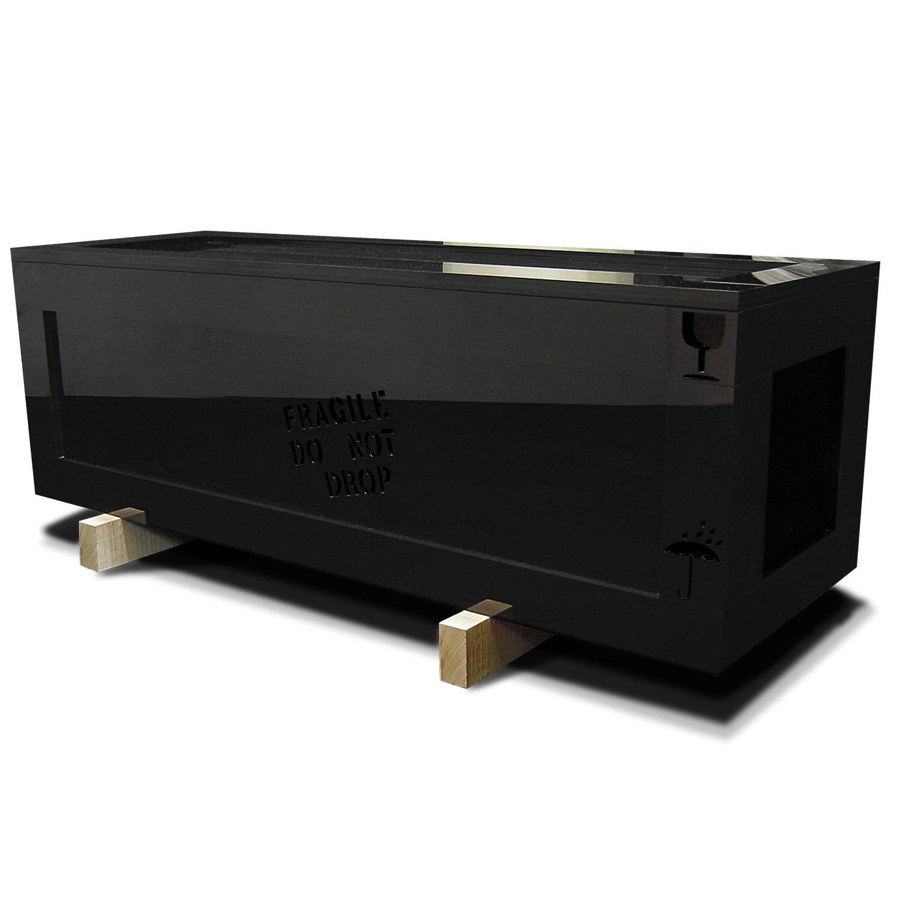 In Table #5, a storage table made of museum quality laser cut jet black acrylic borrows its appearance en gross from the crude and utilitarian craftsmanship to be found in wooden shipping crates. These references disclose yet another of FredriksonStallard’s puns on industrial logic.