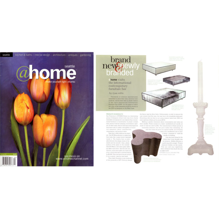 Candle #1 - white FredriksonStallard Date of Design 2003 Size 380mm H, 100mm W, 100mm D Material All wax Edition Unlimited The notion of a candle holder as a durable and precious product of utility is questioned by this object that is beautifully destroyed in […]