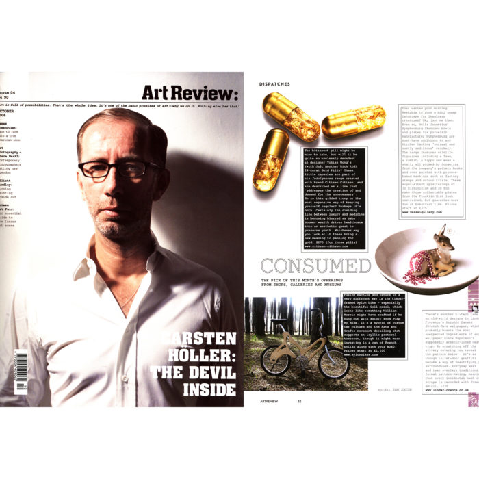 Gold Pills Tobias Wong Wong & J.A.R.K. Date of Design Size 20 mm L each Material 24K gold leaf, capsules Edition Unlimited Analogous to our culture’s obsession with luxury and consumption, these 24K gold leaf capsules turn your innermost parts into chambers of wealth. Consume […]