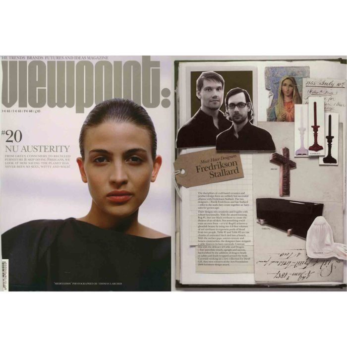 After meeting at St. Martins in 1995 and a fruitful period of acting as sparring partners, Patrik Fredrikson and Ian Stallard officially founded FredriksonStallard in 2005. Coming from the seemingly disparate worlds of crafts based ceramics and product design, they now share a common platform. […]