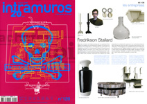 French international design magazine, Intramuros, features an entire page of work by FredriksonStallard. System #1 takes the “book” out of the bookshelf and Candle #1 makes the candle and it’s holder one. Also featured is the Ming Vase, Bolt Vase, the Uplight, and Keyring.